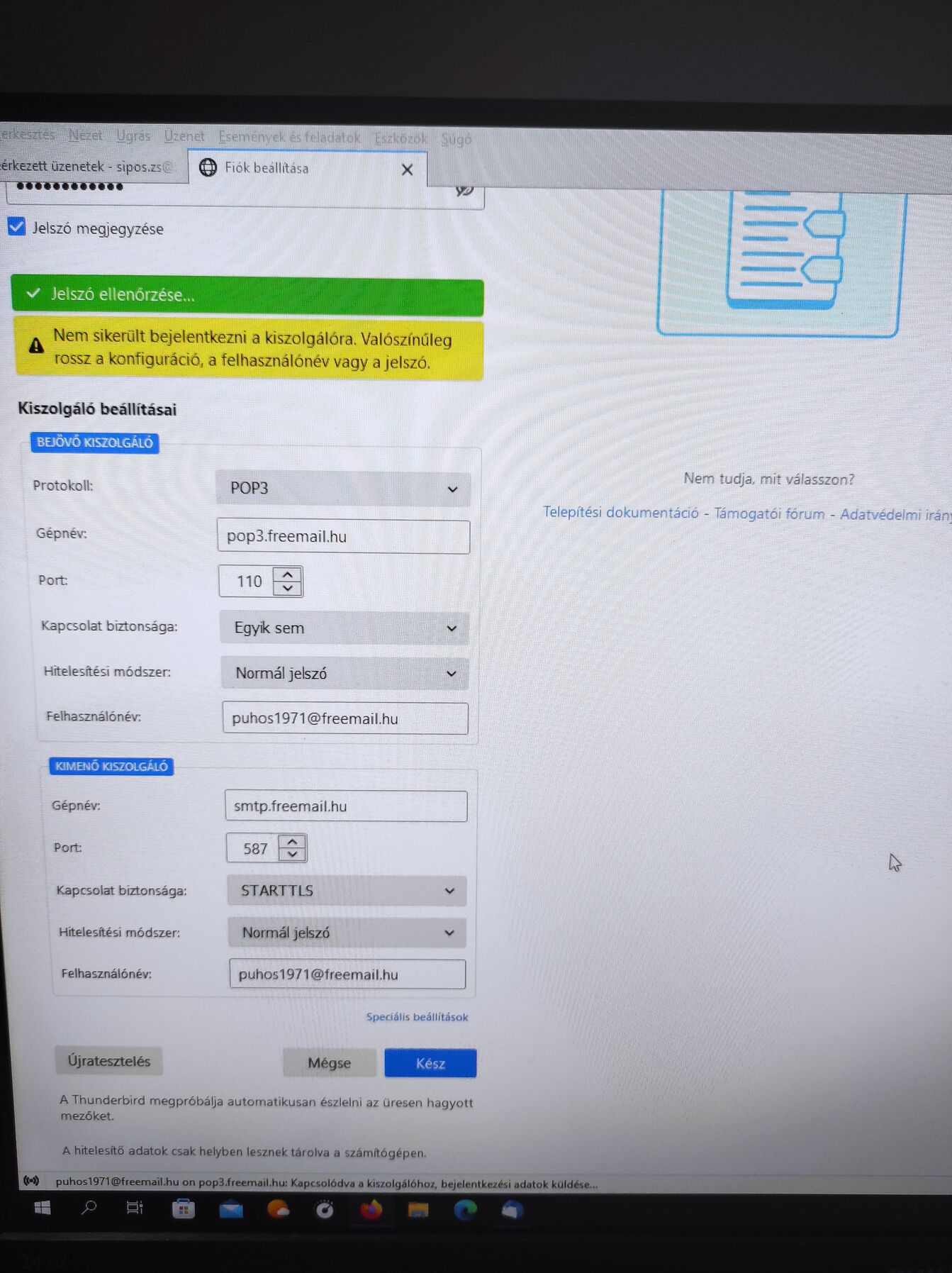 Ne kézzel állítsd be, hanem bízd rá a TB-re. Először töröld ezt a hozzáadott freemail-es fiókot (mármint a TB-ből), majd újra add hozzá. Simán add meg a freemail címed és jelszót, folytatás, válaszd a pop3 protokollt és kész.