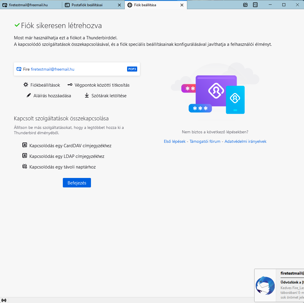 5. lépés -> Sikeresen hozzáadta a Freemail fiókot