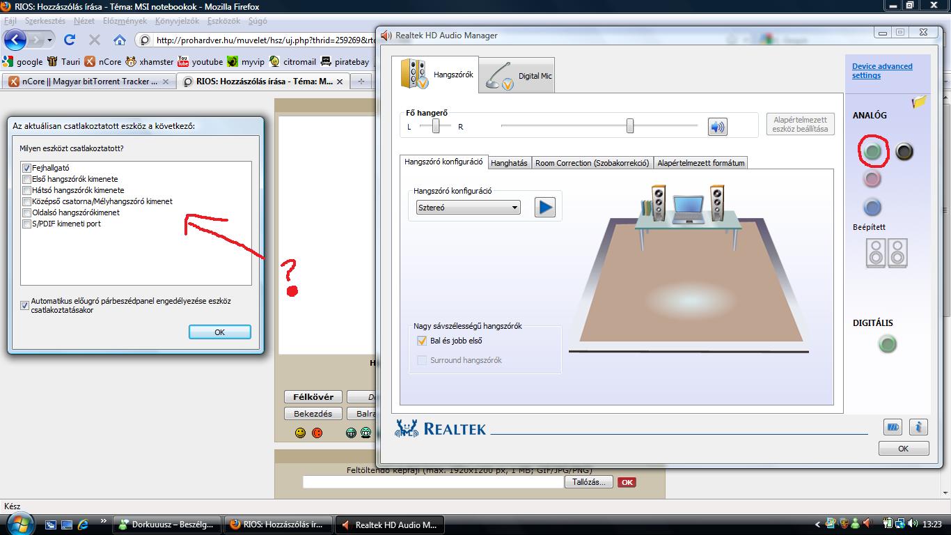 Sziasztok! Nekem egy Msi ex623x-080 -ás notebook vana tulajdnomoban amin egy Windows vista 32bites van telepitve. a hangal kapcsolatba lenne problémám, ugyanis a realtech HD audio driver van hozzá mellékelve, de én most vettem egy 2.1es sima hangfalat és nemtudja kezelni. felrakom a legujabb verzioját a drivernek és kiirja hogy nemtalál olyan hangkártyát a gépbe ami kompatibilis lenne a realtech hd-vel. Ami ugye egyértelmü is mert akármit beállitok tökmind1 neki, ugyanugy szol ^^ szoval aza kérdésem lenne hogy mien drivert telepitsek ami uralkodna a masinám fölött?