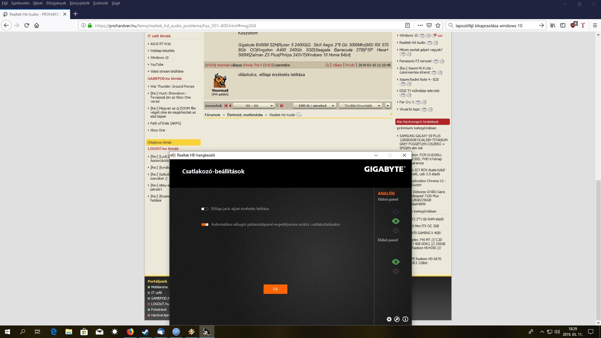 Vettem egy új konfigot és az alaplapi hangkártyán nem tudom azt beállítani, hogy a hátsó jack csatlakozóba bedugott sztereó hangfal egyszerre szóljon az első kivezetésbe (Zalman Z3 ház) bedugott fejhallgatóval.