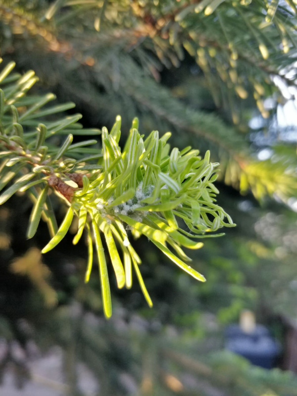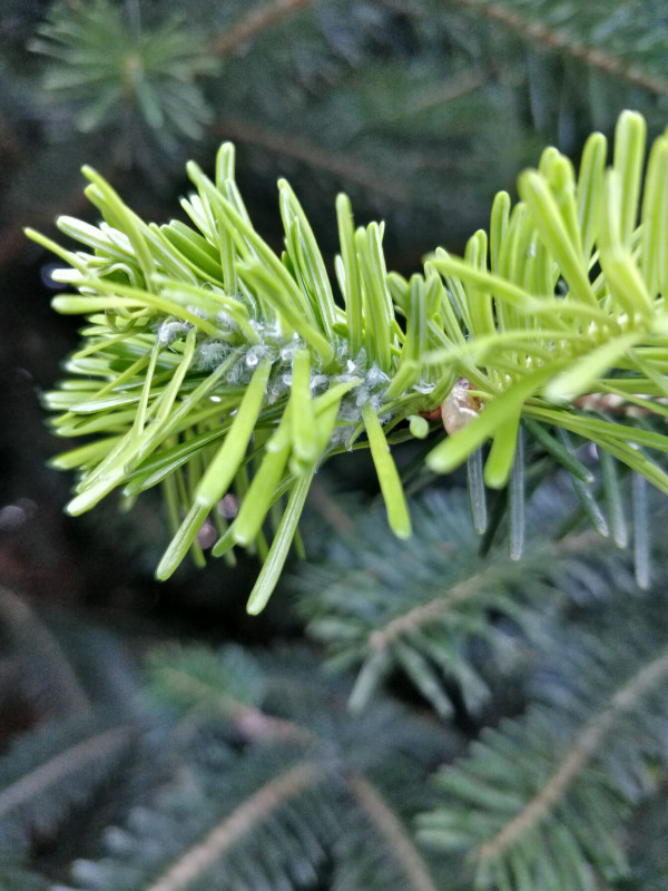 Nordmann fenyőn fehér kis pamacsok jelentek meg, az új hajtások végén. Nem mindegyiken, de ahol van ott elég sűrű. Kézzel megpiszkálva ragacsos. A törzsön is van, de az nem olyan ragacsos, az kicsit inkább penészre hasonlít. Mi lehet ez? Okozhat a fának gondot? Tavaly nem volt rajta ilyen.