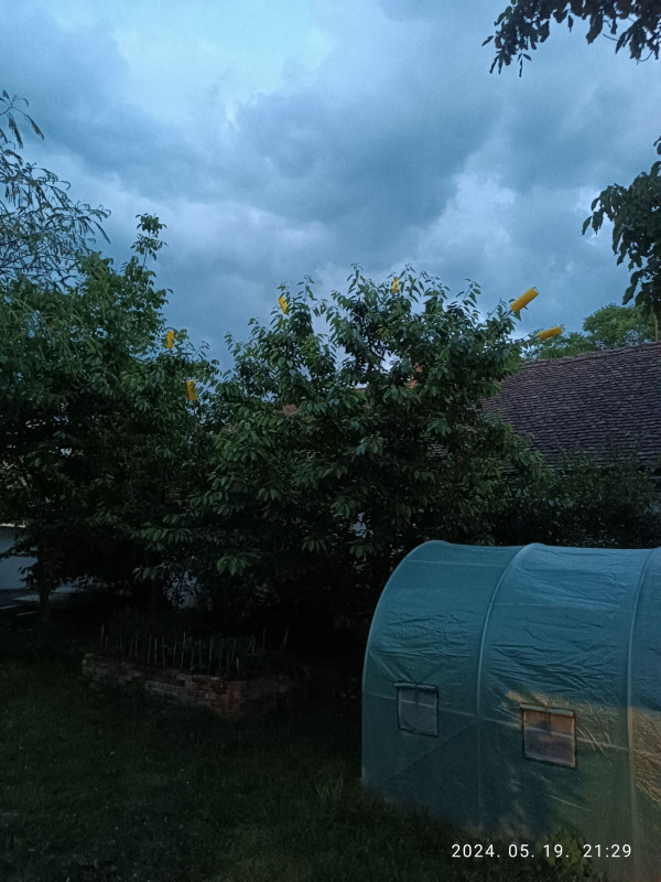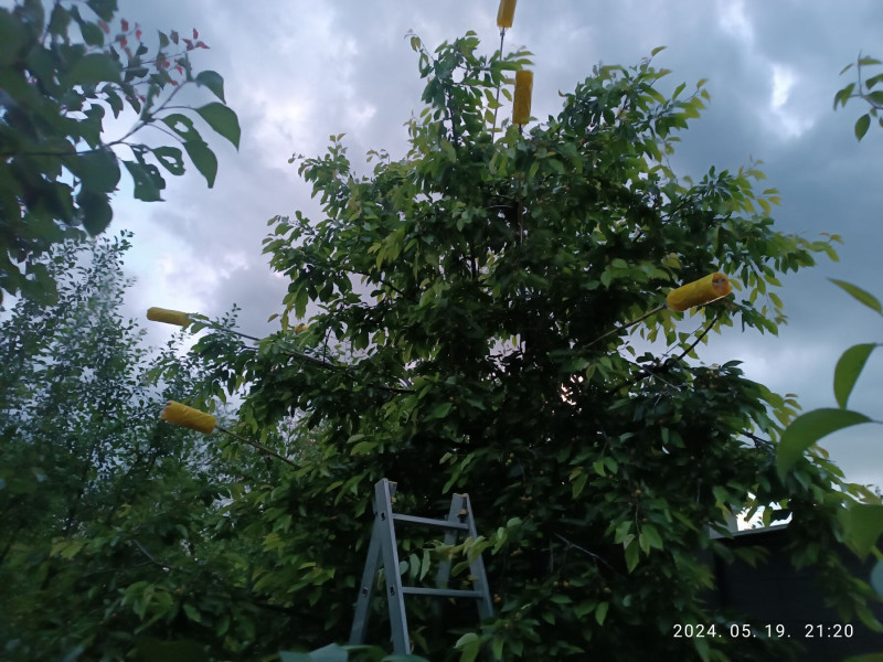 Újra tekertem a pet palackokat sárga ragacsos fóliával , az előző megtelt minden féle kislégy , repce fénybogár , de cseresznye legyek is voltak rajta , most megint rajzás van !