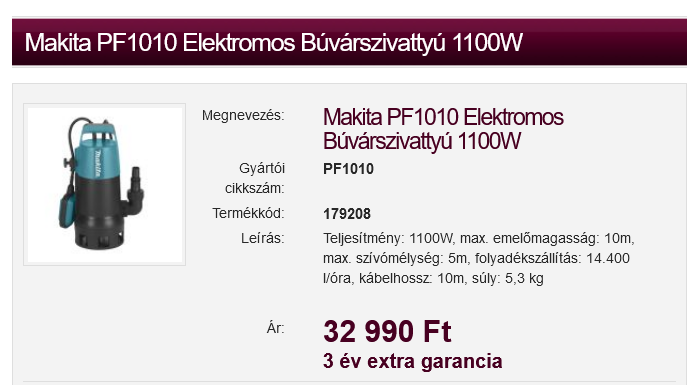 Nos akkor válaszolok magamnak, egy Makita PF1010 váltotta a LIDL-s szivattyút.