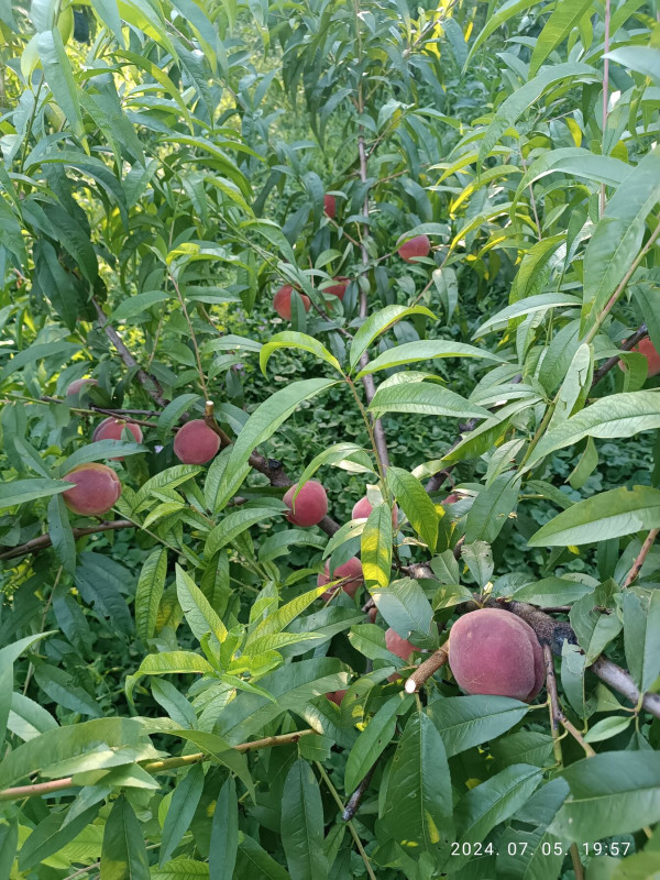 , nállam az őszibarackok alacsonyak , de a többi fám nem , egy kicsit sűrűn vannak , de viszont a magasságukat , úgy állítottam be , hogy a 11 fokos kétágú alu létráról elérjem !