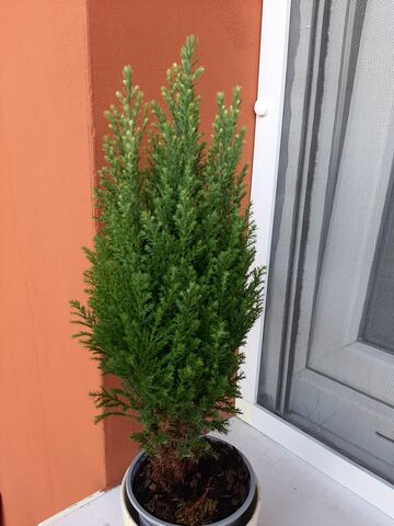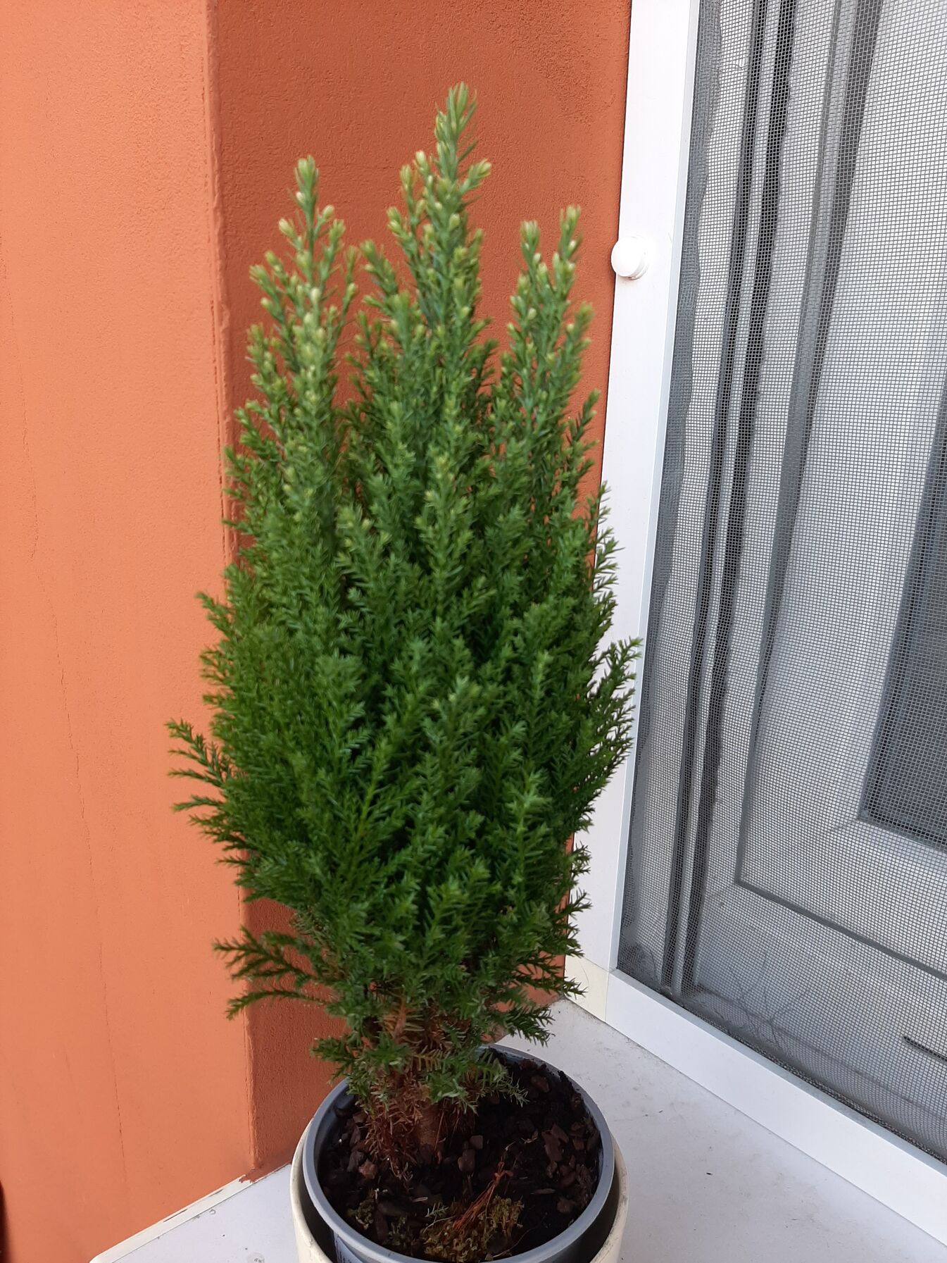 Az előkertemben meg a lisztharmathoz hasonló gombával és a szívogató tetvekkel harcolok. Smaragdtuja oszlopos és arany tuják vannak vegyesen sűrűn ültetve, 12 méter hosszú és közel 5 méter magas a sor, évente egyszer nyírom olyan mint egy áthatolhatatlan fal.