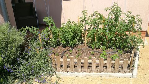 A nagy részen várok míg nőnek még kicsit a paprikák és megy a levágott fű mulcsnak.Van egy csomó paradicsom, ami a töveinél növesztett több szárat. Vagy mert bokor-típusú, vagy nem foglalkoztam időben a metszésével. Nem vészes, de kicsit terebélyes lett így.