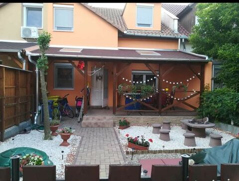 Tervben van a füvesítés, de nem lehet a talicskán kívül más járművel bejönni, csak járda van. Kőre valószínűleg lenne vevő aki kihordaná, de befelé rengeteg föld kellene. Jön a baba nem soká, így se pénz, se idő valószínűleg energia sem lesz