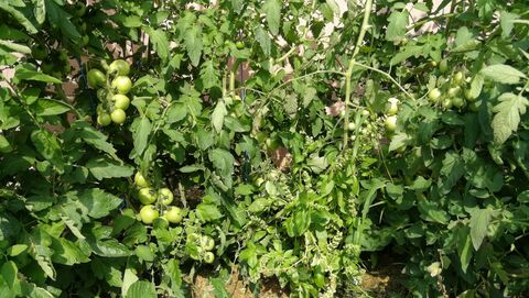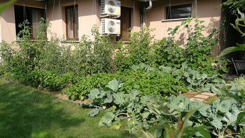 A szárazság odavert a paradicsomnak, egy csomó alsó levelet ledobott miatta, meg azóta is van valami gombája szerintem, de nincs időm foglalkozni vele. Vagy az öntözés vagy a kalcium pezsgőtabletta helyrerakta a kalcium hiányt azon a San Marzanon amit vettem. A másik csíkos, amit én vetettem az egyáltalán nem mutatta a jeleit kalcium hiánynak, amiatt gondolom, hogy inkább a szárazság viselte meg. Kellett az eső is. Szereznem kéne még karót és felkarózni azt a pár tövet, ami bolti. A különbség a bolti és a saját között, hogy a sajáton több a termés, viszont az magasabb és nem olyan erős a szára, úgyhogy muszáj a karóhoz kötöznöm, ha nem akarom, hogy összerogyjon a saját súlya alatt. Ha felér a karó tetejéig, akkor majd letöröm a hajtást. A paprika is szép, azon is van már. A bazsalikom is tűrhetően néz ki, bár szépnek nem mondanám, volt már 3-4x ekkora is. Virágba akar menni, úgyhogy azt is le kell tördelnem, hogy inkább bokrosodjon. A poloska helyzet alakulóban van, úgy néz ki, hogy szaporodnak a rohadékok. Nagyjából ez van most. Majd valamikor lefújom rézzel és narancs vagy fahéj olajjal, hátha lemegy róla a gomba és a poloska.