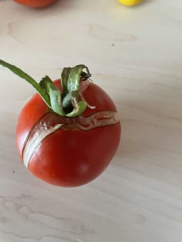 Ha megázott, akkor a héján keresztül beszívta a vizet, és az ozmózisnyomás vitte szét. Nem nagyon lehet mit tenni ellene, eső előtt kell leszedni az éretteket. Szőlőnél gyakori az ilyesmi, hogy felreped a héja, ha megázik. Kémia órán szokták is oktatni, de ki lehet próbálni, hogy érett szemeket vízbe teszel. Azt nem tudom, hogy öntözésre is ez történik e, ha csak a tövét öntözöd. Talán igen, mert ha nagy volt a szárazság, mint az utóbbi hónapokban, akkor sok növény berántja az összes vizet, amit csak tud. Túlötözésnél is azt látom, hogy pl. a gyömbér minden vizet a gumójába gyűjt, hogy a gyökerek ne rohadjanak be, és ne fulladjon meg. Nem értek hozzá, de azt hiszem a perlitet pont ezért keverik a földbe, hogy megkösse a felesleges vizet, ha túl sok van, és egyenletesebb legyen a felszívódása. A mulcs is ugyanúgy fel tudja szívni a vizet, ha elég vastagon van, és kiegyenlíti a víz felvételt, hogy ne legyenek a gyökerek teljesen elárasztva. Szóval végülis talaj kezeléssel is lehet ezt orvosolni, ha tényleg a hirtelen túl sok víz okozza, és nem a héján keresztül szívódik fel.