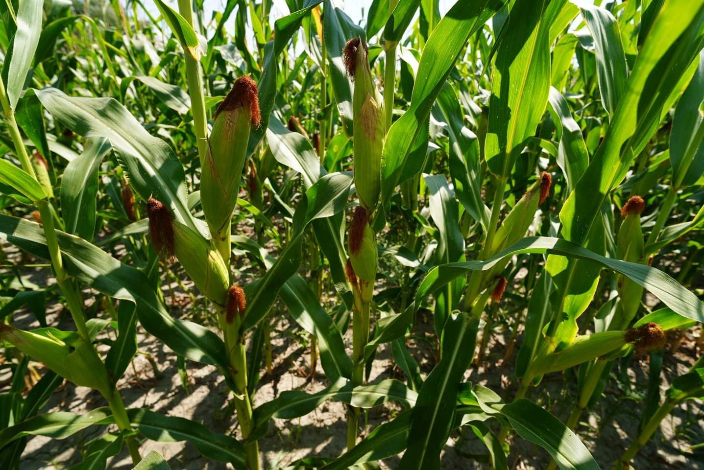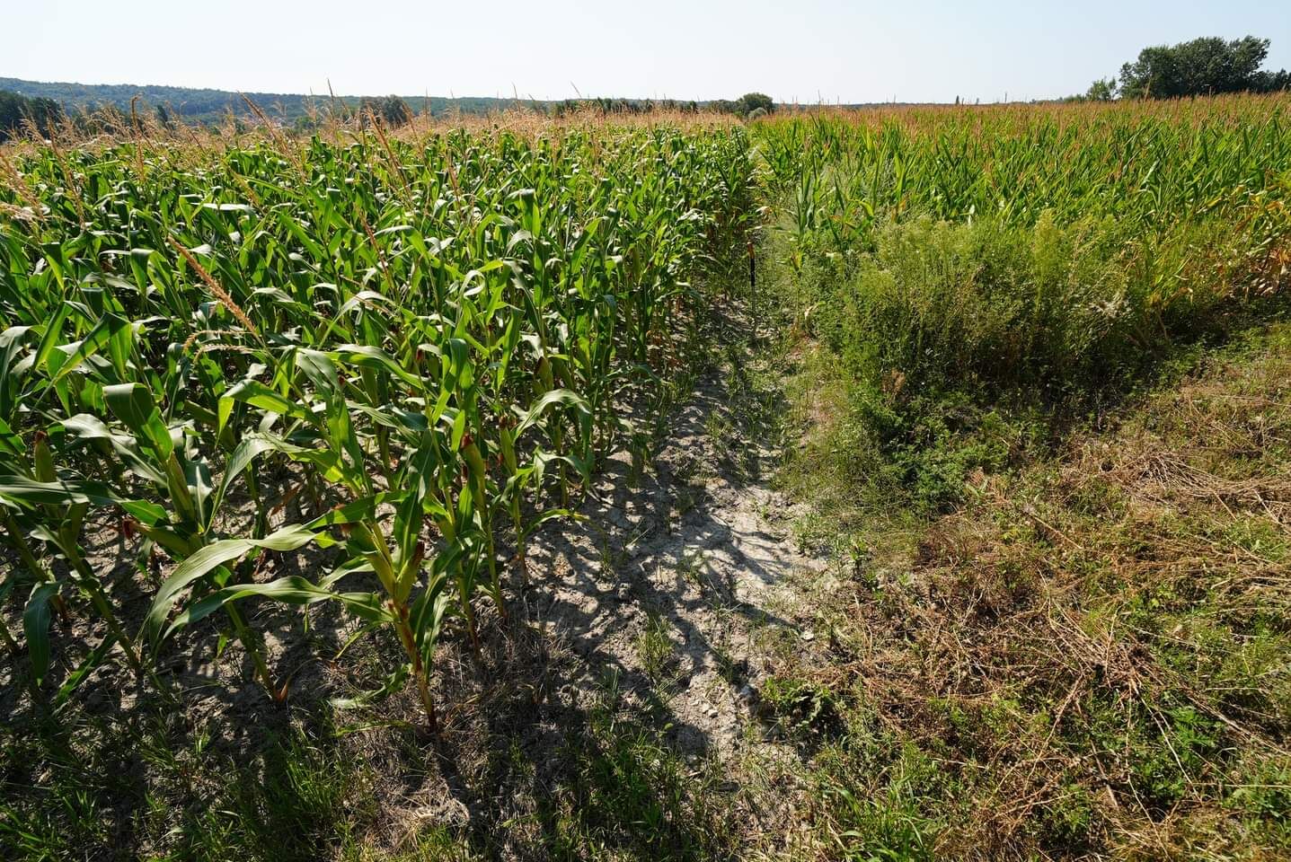 A bal oldali táblán azonban nyoma sincs az aszálynak, két csöves kukoricák állnak a sorokban.
