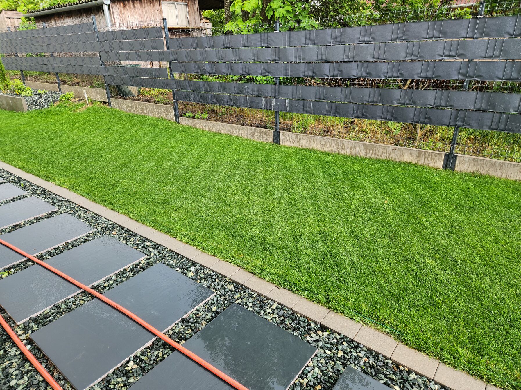 Ha nem is lett tökéletes gyep, egész vállalható volt, ezért gondoltam hogy inkább ebben az irányban megyek egy jobb megoldás felé. (na meg az anyagi keret is eléggé véges)A meglévő agyagos földben a gyomok brutál mód nőnek, valami csak van benne