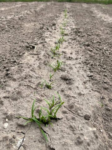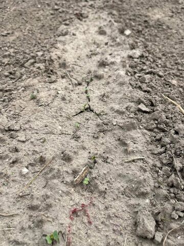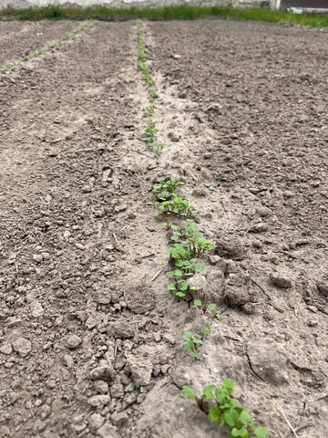 Illetve a 3 hete vetett magjaink egy része már kibújt.Egy sávot meghagytam a szélén, ahova most nem raktunk semmit, ennek mondjuk elég egyszerű oka volt, a fél kg lucernamag helyett 1,5 kg-ot kellett volna venni, de akkor most ott nem lesz semmi, majd a tyúkok kapirgálják, őszre pedig oda mennek a gyümölcsfák.