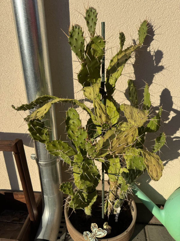 Adott ez a (elvileg füge) kaktusz, ami nyáron egész vidáman elvolt, napi 1x minimális locsolással, azonban most ahogy jönnek a hidegek, megint félig lekonyult, picit sárgult a teteje, és beráncosodott, és nem jövök rá, mit rontok el (kb 30 éves kaktusz lehet, pontosabban annak a hajtása, még anno Korzikáról hozták nagyszüleim, Anyumnál is van egy hajtása, panel lépcsőházban, az heti 1 locsolással gyönyörű méregzöld élettel teli).