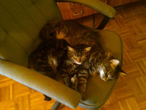 Kloé rendszeren jön elénk, amikor valaki hazaér. Esténként képes órákat rajtunk feküdni, néha dagaszt, de általában csak bújik és dorombol. Imádva van a szőrös kis valaga.... jobban él, mint némelyik ember