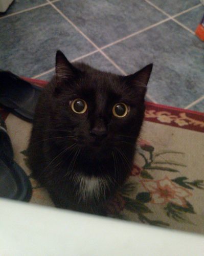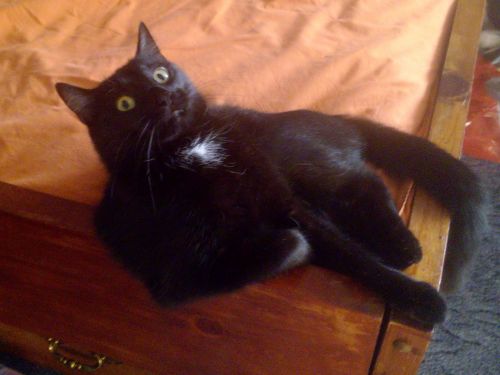 A másikon meglepődtem mikor a nyakamba ugrott. Sündörgött az asztal körül, először az ölembe, majd a nyakamba, majd a vitrinre ugrott.