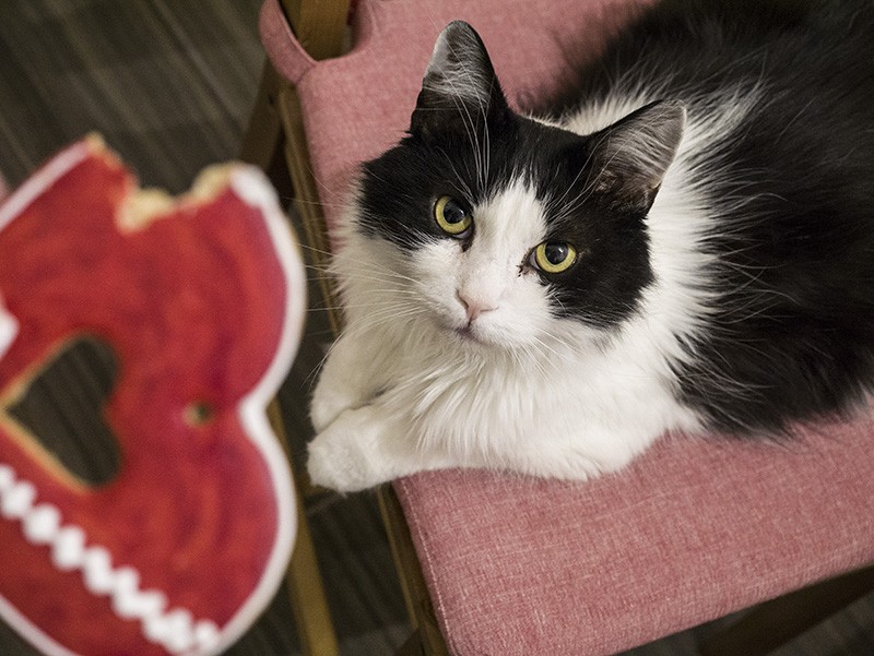 Ezt a gyönyörű cicót egy ismerősünk találta, szegény egyáltalán nem volt képes használni a hátsó lábait, megsérülhetett, keservesen mervegett segítségért. Állatorvos biztatóan ítélte meg az állapotát és igaza is lett, a lábai meggyógyultak, járás, mászás, futás, rohanás, ugrás, mostanra minden tökéletesen megy. Egyedül a nyújtózkodása furcsa mert hajlamos a mellső két lábára állni közben.