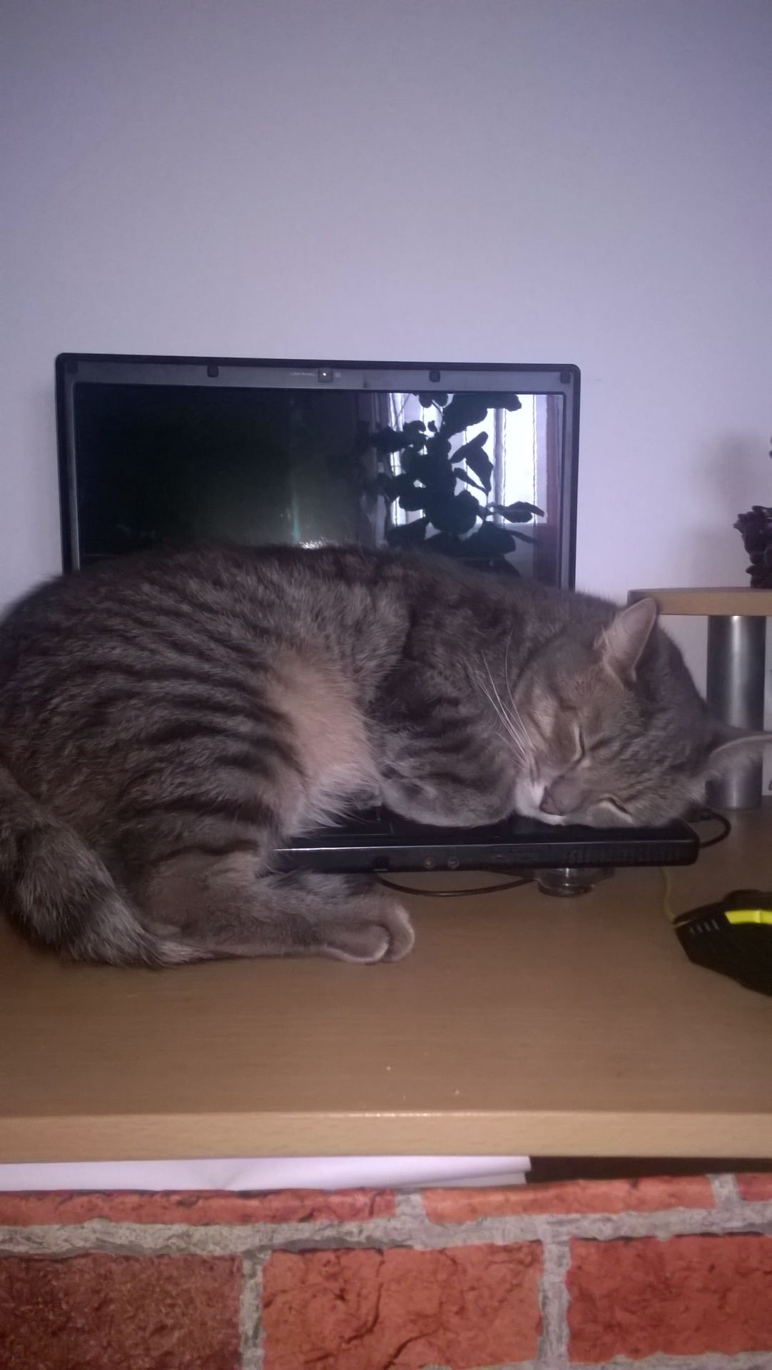 Kedvenc jelenetem, amikor a mellső lábaival a tv tetején kapaszkodik, a hátsókkal pedig a képernyőn kaparja, hátha úgy feljut... TV eddig még túlélte. Normál esetben meg a komódról simán felugrik a szekrény tetejére.