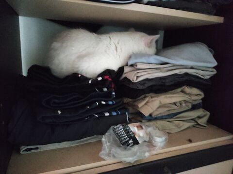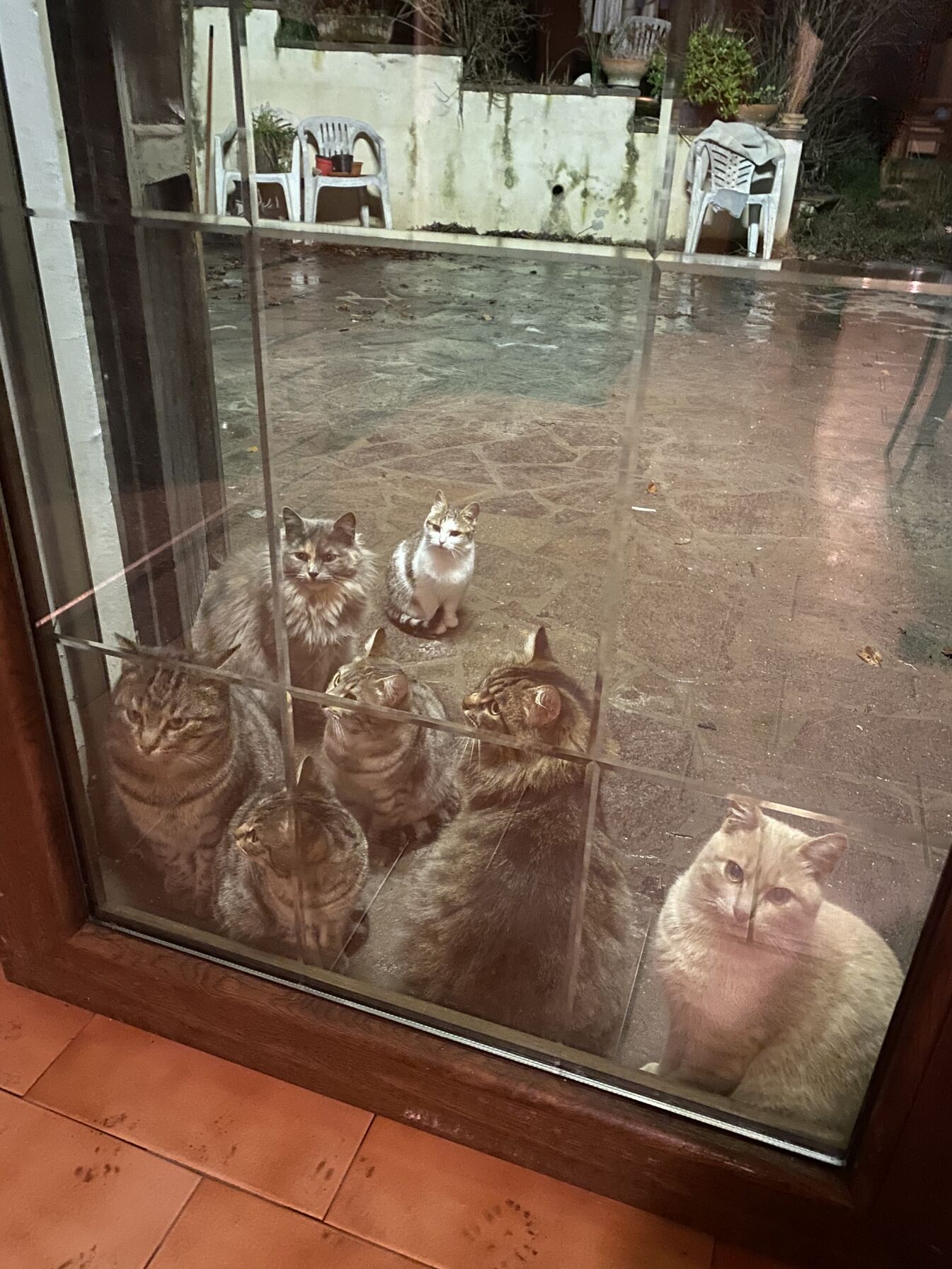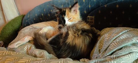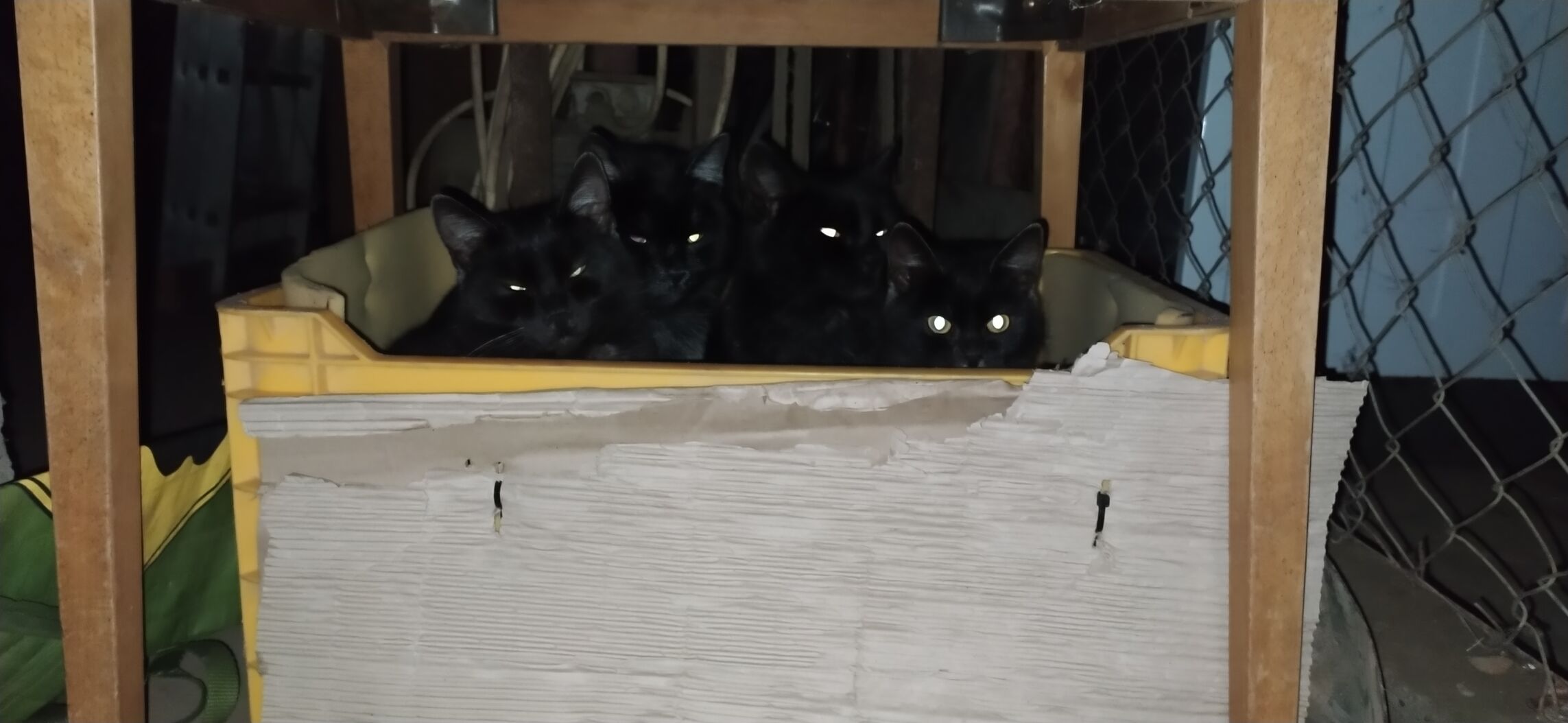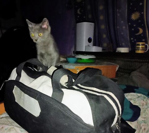 Édesanyám kórházban van kivizsgálások. Én naponta járok a szülői házhoz cicákat etetni. Kettő teljesen kinti, egy kinti/benti szokott lenni. Mikor vittem édesanyám, akkor bejött. El van, használja az almot. A gond az, hogy nagyon félénk. Mikor ott szoktam lenni, sokára jött hozzám mindíg, általában ha kaját adtam neki vagy épp ebédeltünk. Olyankor még oda is bújt egy kis nasiért. Ezekben az esetekben édesanyám mindig ott volt. Mióta nincs otthon, nem jön elő, csak hallom, hogy válaszol. Néha az ágy alól kukkol. Így nem tudom kiengedni sem. Másnapra fogy a kaja, eszik rendesen.