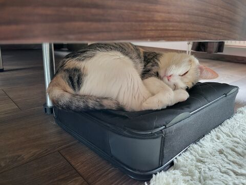 Kalandos úton került hozzánk, a szembe szomszédom fia ausztriából hazafelé találta. Az A2-es egyik pihenőjében a benzinkúton futott be a kocsija alá. Próbálta a kúton kideríteni nem-e kereste valaki, de nem tudtak róla, így elhozta magával.
