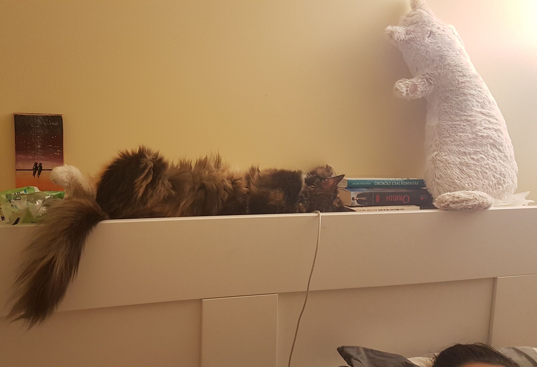 - lefekvéskor elcsendesedik, cserébe a fejünkön akar aludni, mióta befogadtuk