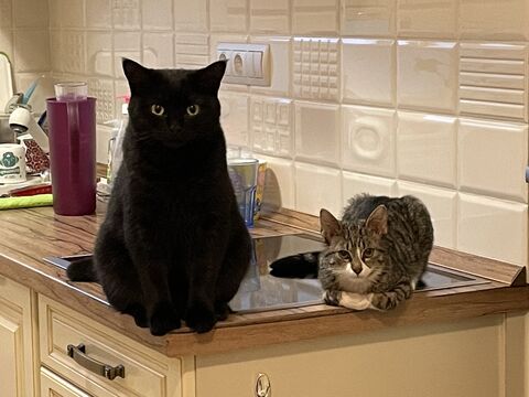 Itt leírtam, hogy elmaradt a háború az "öreg" (2,5 éves) brit macska és a karácsony után befogadott beteg lábú 3-4 hónapos cica között. Azóta viszont a cuki cicahaverságból cicabarátság level 999 lett... Az, hogy rengeteget játszanak, egy dolog, miként az is, hogy hiába hoztunk új almot a kicsinek, egy almot használnak (mindketten az újat...). Szerdán elvittük a kiscicát még egy kisállat ortopédspecialistához, több szem többet lát, ő ugyanazt mondta mint a másik orvos, érdemes megpróbálni megmenteni a lábát (ma már volt cica fizioterapeuta is nálunk...