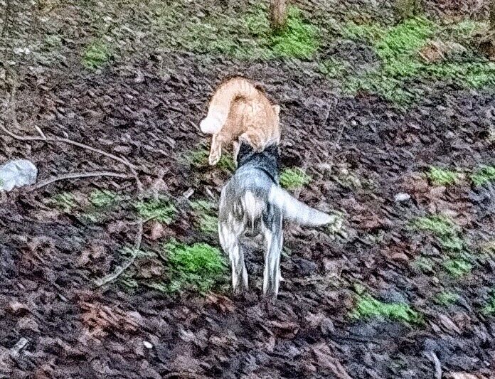 Nővéreméknél Maszat átvette az irányítást. Pár hete még esélytelenül nyöszörgött az erdőben, de most jól érzi magát, úgy gondolom: