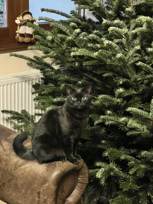 Nálunk is most lesz az első közös karácsony. Tegnap állítottuk fel a (mű)fát, egy kicsit ízlelgette a leveleket, meg a törzsét.