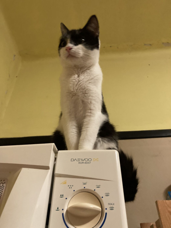 1 cicu, kandúr (volt). Hogy kevésbé csavarogjon/jelöljön ivartalanítva lett. Anya cica édesanyáméké volt. Szürke hátú fehér hasú. Apa ismeretlen, de valószínűleg nem sima házi, mert hosszabb lábú és nagyon szépen bundájú lett. 3 tesó volt még azok nem lettek ilyenek, azok szürke-fehérek, de testformára hasonlók.
