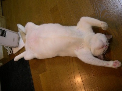 Amúgy nagyon durva macska volt... Nem csak Bercit kergette el hanem egy magyar vizslát is sikerült félelembe taszítania. Vizsla mentségére szóljon szegény már elég öreg;) Szorult belé egy kis hajlam, az emberi ősétől: vörös macskákat azonnal elkergette, szürkéktől a kajákat vette el, ám fehéreket imádta (igaz a feketéket is, de akkor nem hiteles a kép).
