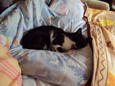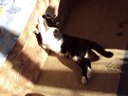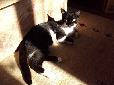 Hát mi is bevállaltunk egy költözést macsekokkal (Zafi, nőstény, Gömbi, kandúr) egyetemben. Nagyobb a lakás, bírják is a dögök a nagy teret. Volt egy kisebb ijedtség, ugyanis még nem volt időnk macskafejjel gondolkodni. Földszinti a lakás, erkély alatt egy üzlet napellenzős ponyvája van kihúzva éjjel-nappal. Namármost a dögök egy este az erkélyről kimásztak a ponyvára, onnét meg csak egy ugrás a szabadság. Mikor felkeltem reggel, elfogott a para, nem jöttek üdvözölni, ahogy szokták. Nosza felöltözés, keresés. Zafi szerencsére kevésbe volt kíváncsi, a lépcsőház ajtó előtt feküdt. Gömbi macerásabb volt, a szomszéd tömb bokros részén majrézott. Szóval szerencsére meglettek, macskaszökés elleni óvintézkedések azóta megtörténtek.