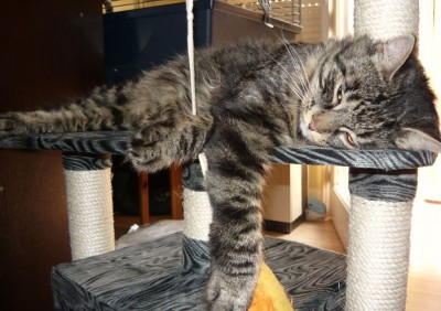 Én is készítettem neki magam is mászókát, mert a gyáriakra alig fér rá, pedig egy normál kis házimacska. Annyira nem szereti a cuccait használni, tényleg inkább az a jobb, ami gazdi szagú, ami gazdié.
