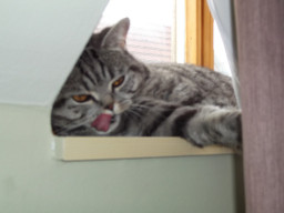nyalogatás: régen volt egy fura cicánk, ilyen fél-vadmacska volt, de nagyon édes volt esténként, ahogy bújt az emberhez, és összenyálazta