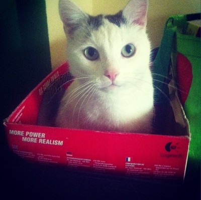Úgy gondoltam, hogy unalmas lehet Salemnek egyedül a lakásban miközben dolgozom - és amúgy is 2 lakásos a macskavár, ami otthon van, valamint a bőr ajtót és néhány helyen a tapétát már úgyis lelakta unalmában Salem -, így örökbe fogadtam egy aranyos, 4 éves, szoba és fajtatiszta hófehér európai rövidszőrű cicahölgyet