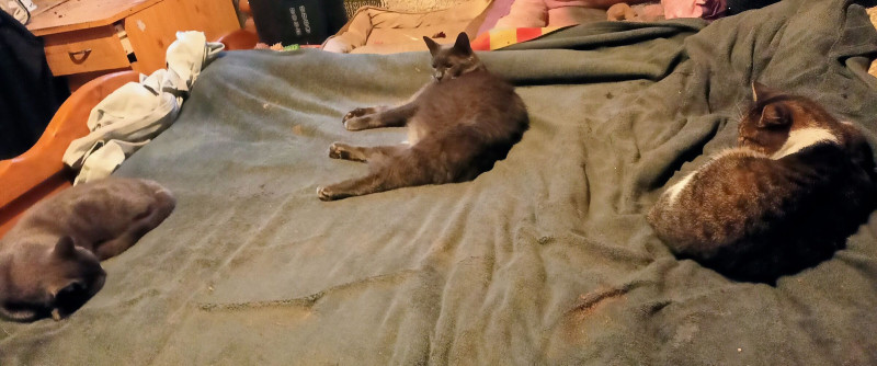Feringa éppen szárazabb konzerv volt, meg se szagolták, de mérgesek lettek és egymásra morogtak, majd egyik nekiindult, a többi is megijedt, felborítottak mindent a konyhában, ahol enni kapnak. Néha van dili náluk, de ez hajnali 5h előtt nálam is kicsit sok(k) volt most. Hangosan káromkodtam, a macskaajtókat is majdnem kivitték úgy rohantak ki! 😸 De kb. öt perc és szivárogtak vissza. Én már kávéztam, erre dörgölőznek, dorombolnak, majd adom a feringát ismét Nekik és úgy falják, mint a kóbor macskák. 🐱
