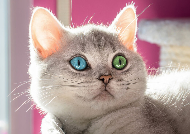 A két szem eltérő színét a szemben lévő festékanyag, a melanin hiánya, vagy többlete okozza, tehát csökkent, vagy fokozott festékezettséggel járó pigmentzavarról beszélhetünk. Megkülönböztetünk teljes és részleges heterokrómiát, az előbbi esetben a két szem teljes mértékben különböző színű, az utóbbinál pedig az egyik szem szivárványhártyájának csak egy része tér el a többitől. A jelenség sokkal gyakrabban fordul elő a fehér cicáknál és főleg a török van és a török angóra fajták érintettek