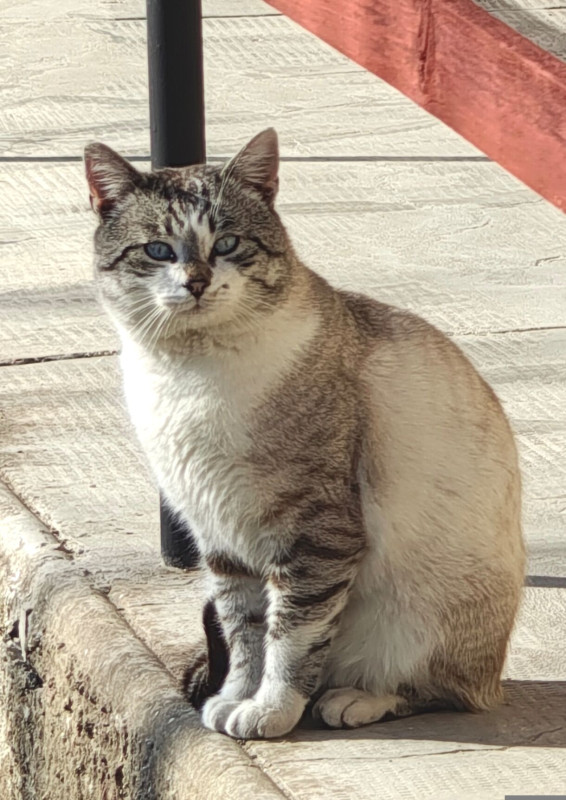 1 cicu, kandúr (volt). Hogy kevésbé csavarogjon/jelöljön ivartalanítva lett. Anya cica édesanyáméké volt. Szürke hátú fehér hasú. Apa ismeretlen, de valószínűleg nem sima házi, mert hosszabb lábú és nagyon szépen bundájú lett. 3 tesó volt még azok nem lettek ilyenek, azok szürke-fehérek, de testformára hasonlók.