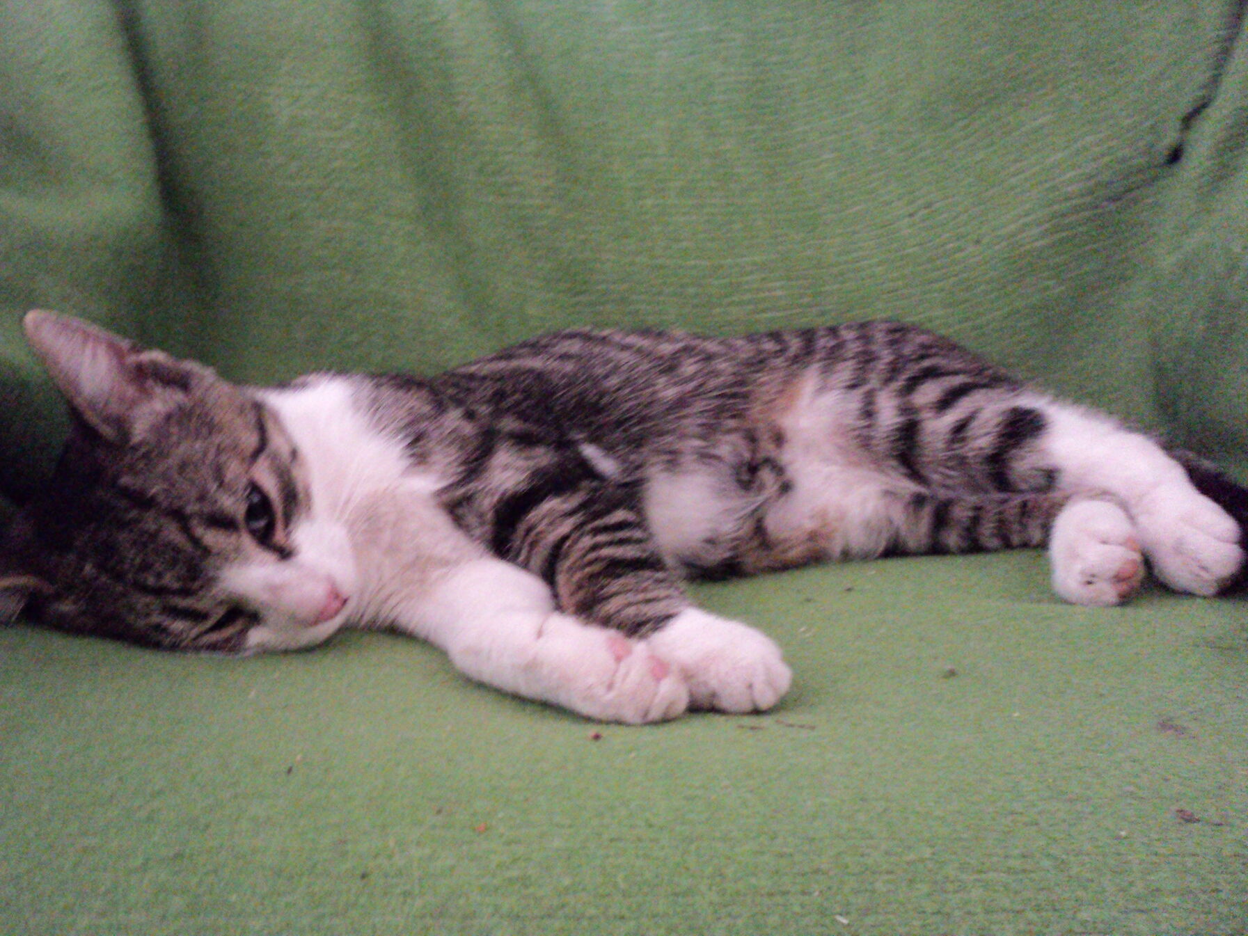 Betegebb volt látszatra mikor már átkezdett járni, azóta javult mióta etetjük, de sajnos így nem sokat tehetünk, főleg, hogy elvileg van gazdája.