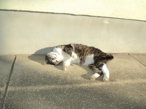 Illetve a szomszéd macskája az ablakunk alatt, a múltkor be is jött és felfeküdt az ablakpárkányra belül!!!