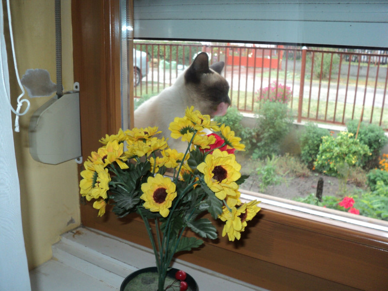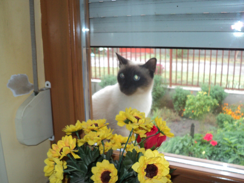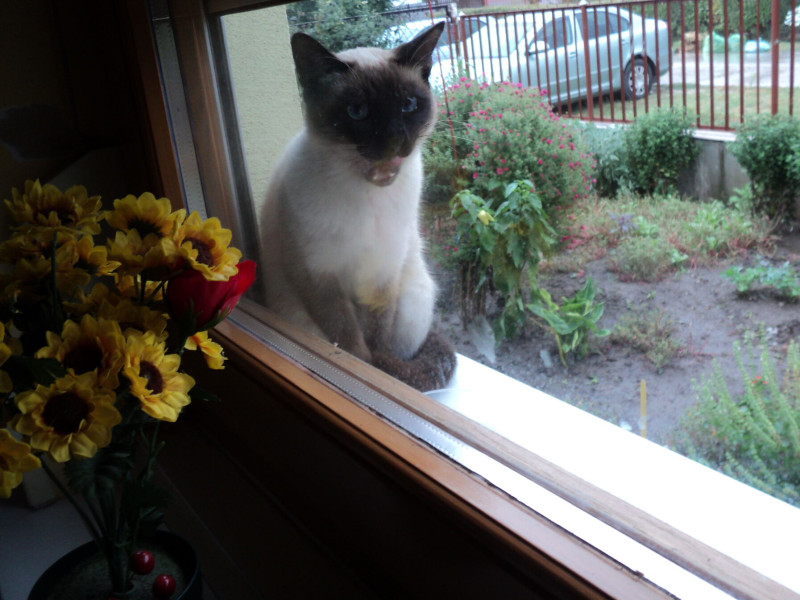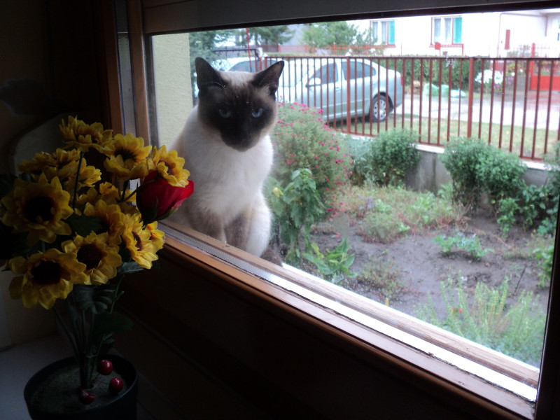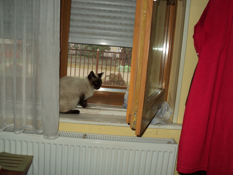 Üdvözlet! A szomszéd sziámija nem szívbajos a hátsó ablakon bejön, beül, aztán majd kimegy!!!