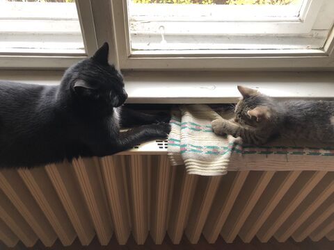 Napról napra látható volt a változás, de a nagy macska nem egyszerű eset, volt már rossz tapasztalat, amikor összeengedtük a házzal együtt kapott macskával, akkor azonnal nekiesett, nagyon durván. Pedig előtte ők is elég sokat nézegették egymást a szúnyoghálón keresztül, közvetlen közelről.