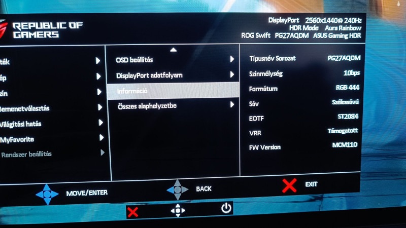 A monitor tápellátását a monitor OSD menüjében mindig ki, utána pedig újra bekell kapcsolni amikor inditom a gépet. Ez kb egy 4 másodperces művelelet. Ez egy monitor újraindítasnak felel meg. Az Asus support szerint. De ezt minden újrainditáskor vagy indításkor elkell játszani. És rögtön 10 bit a szín. Érdekes. A legújabb MCM110-es monitor firmware van fent. Írtam nekik, hogy lehetne monitor ki -bekapcsolás nélkül ezt a hibát eszközölni, de még nem válaszoltak. Széria számot, meg mit tudom én mit kértek tőlem. De külföldi fórumokon utána olvasva ez firmware hiba, amit a monitor újraindítása old meg.