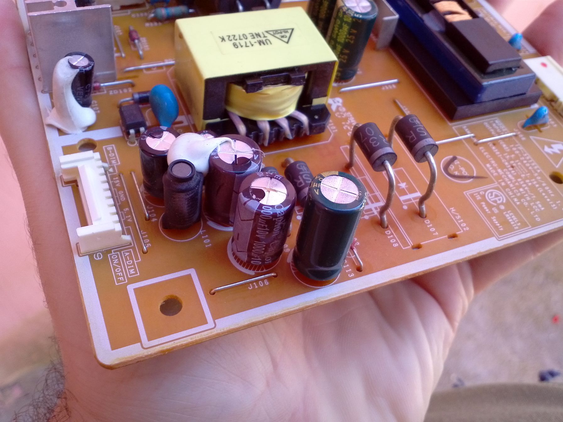 Samsung T24C300 monitor és TV egyben, amiről érdeklődöm. Ma este monitorként üzemeltetve egyszer csak pukkant egy nagyot, kép elment, a bekapcsolás visszajelző led szintén elsötétedett, majd ezután újra bekapcsolt, és a kép is visszajött. Ekkor azonban jobbnak láttam mielőbb kikapcsolni, először a kis érintős ledjénél, majd ki is húztam a tápból.