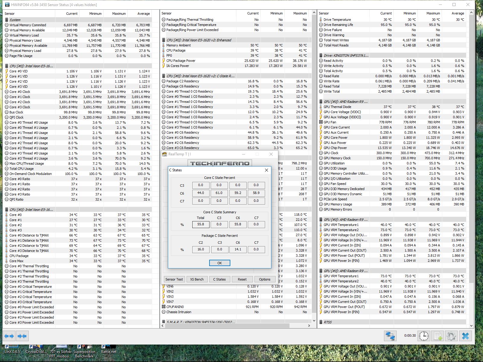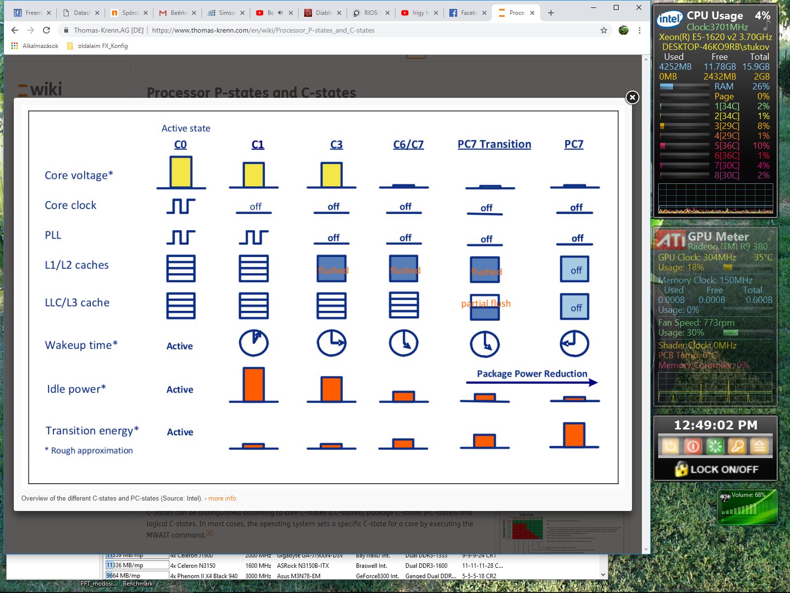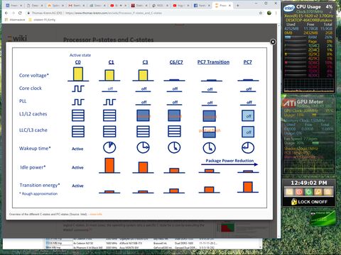 Monitorozása: ez se rosst kérdés, a HWINFO64-ben van olyan mező, ahol írja a CPU C-STATE-et, de azt nem tudom, hogyan kell értelmezni, ahogy váltogattam a W10 enbergia-sémái között, itt is ugráltak a %-ok.