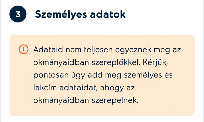 A lakcímadatok bevitele után mindig hibát dob ki.