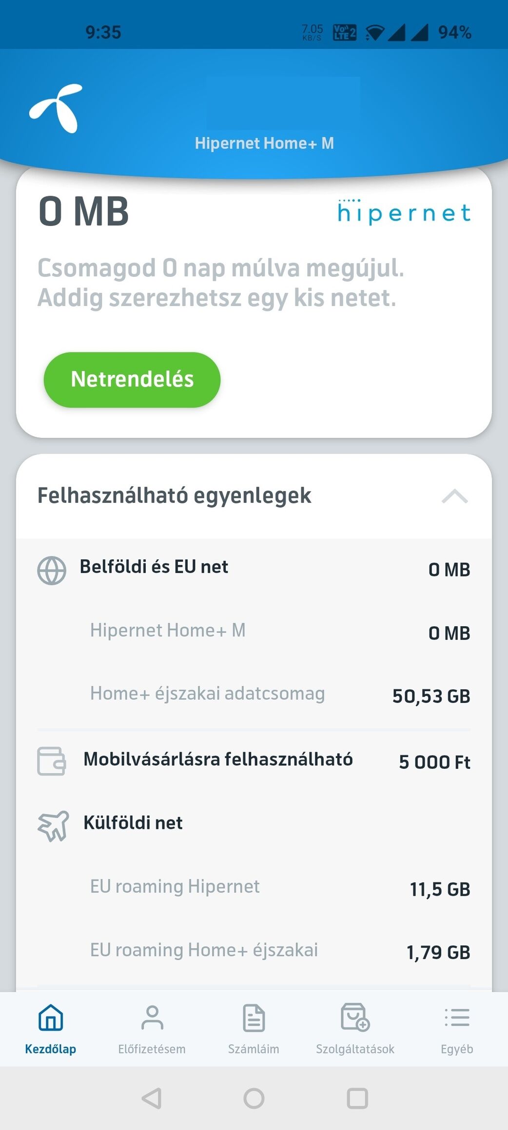 Pont egy teljes hónap, mire elfogyott a 60 GB. De ami ugye érdekes volt, hogy reggel netezés közben lekapcsolt, mondván 0 MB maradt. Oké, de délutánra honnan kaparta össze a rendszer azt a közel 3 MB-ot?