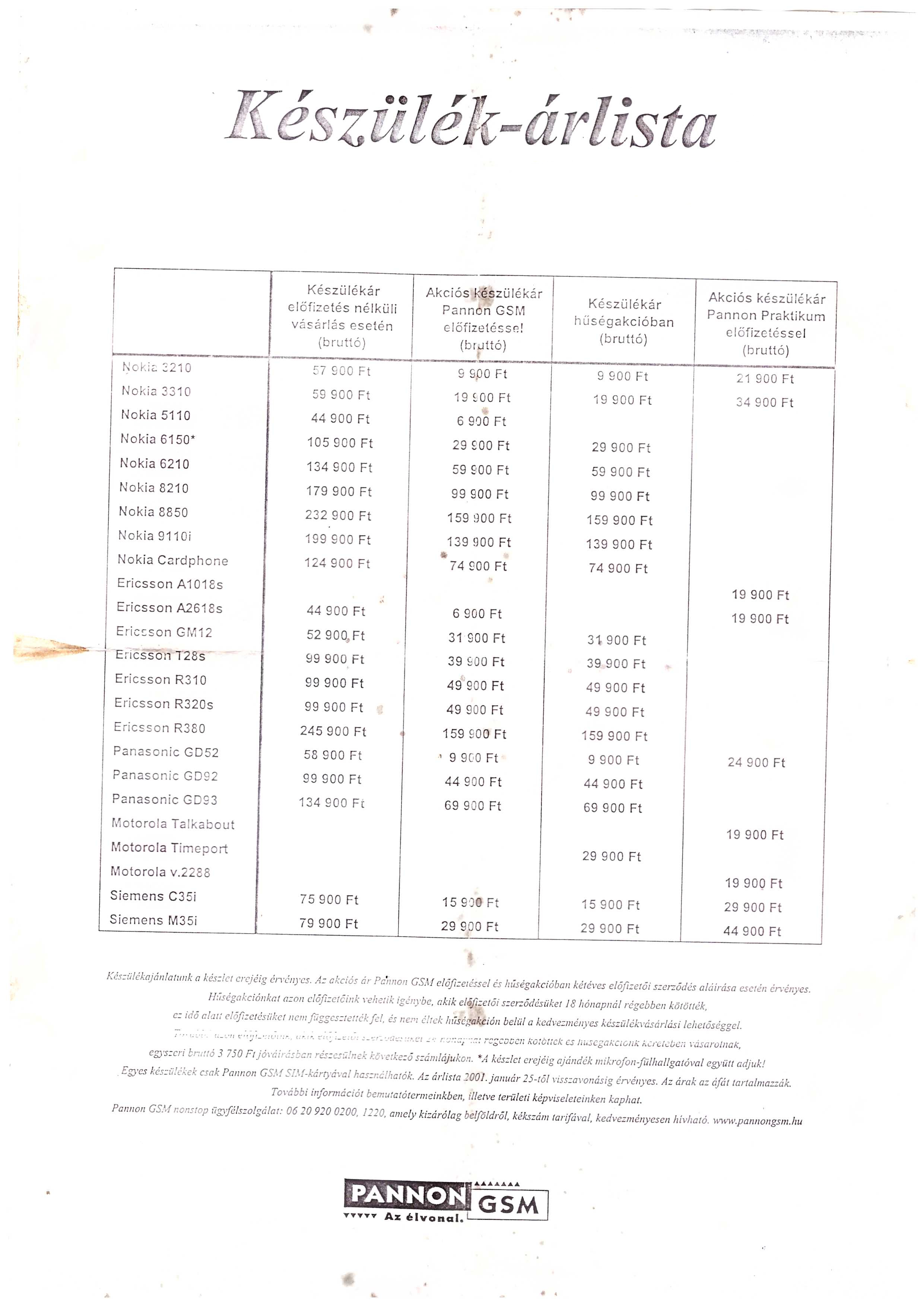 Az már "űrkorszak" volt. Az egyik első Pannon teló a 1011 -es Nokia volt. 86 ezerért vettem náluk vmikor a 90 -es évek közepén. Emlékszem, volt már 2110 is, de azt 200 körül árulták.
