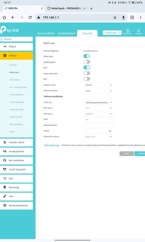 "Ha beléptél a kezelőfelületére, a Speciális - Hálózat - Mobil wan menübe kell menni. Itt jobb gombbal kell kattintani egy üres helyre, majd a a Vizsgálat-ot kiválasztani. Itt módosítani kell a rejtett div-ek css-ét úgy, hogy láthatóak legyenek. Készítettem egy kódot, ami automatikusan megcsinálja ezt, ha esetleg nem tudnád hogy kell.
