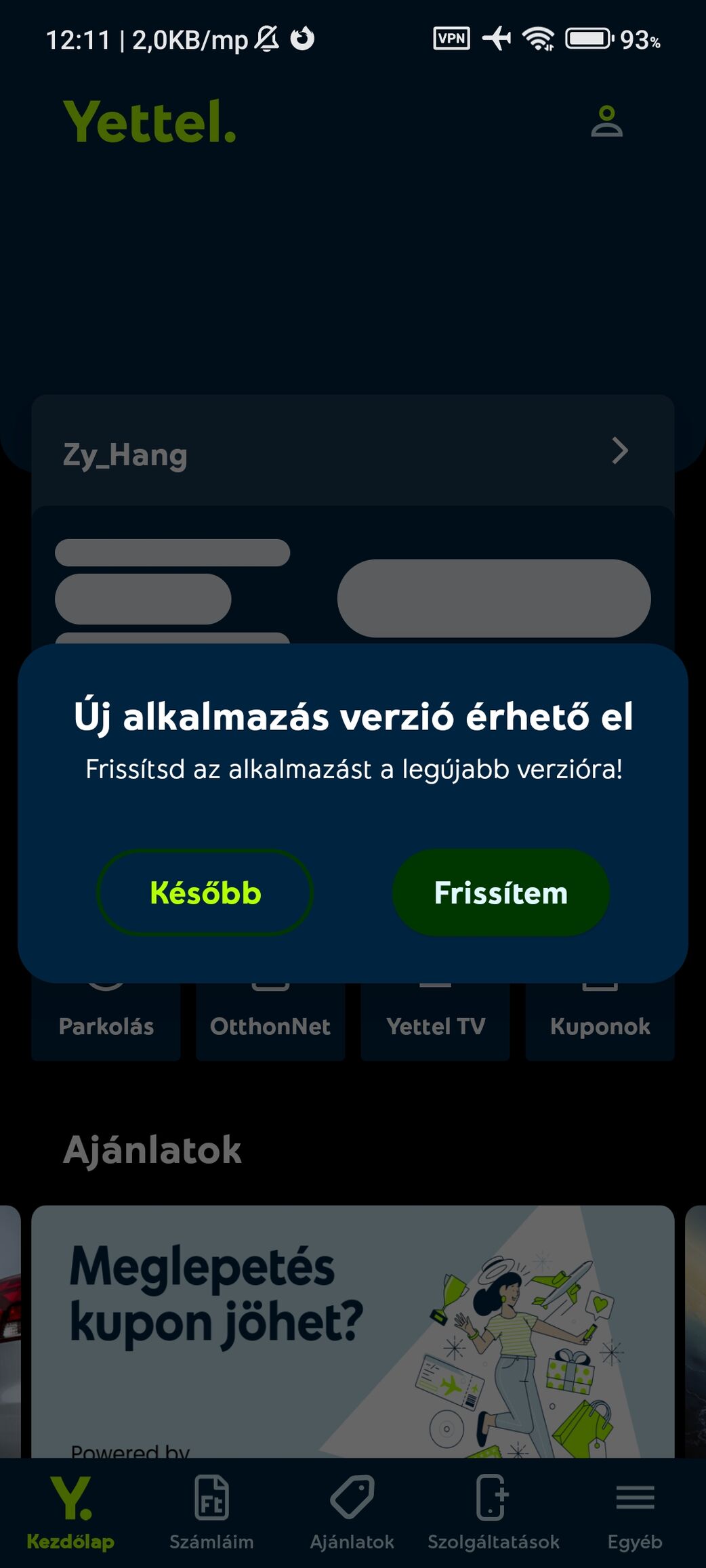 "Karbantartás lesz a Yettelnél augusztus 19-én este 10 óra és augusztus 20-án hajnali 4 óra között. Ezen időszak alatt nem lesz elérhető az online fizetés, ami magába foglalja a yettel.hu oldalon történő rendelést, számlabefizetést, feltöltést és feltöltőkártya-aktiválást, adatjegyvásárlást, előfizetés-módosítást, Yepp előfizetés-vásárlást és -módosítást, illetve a partnericsatorna-befizetést."