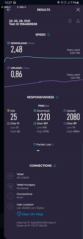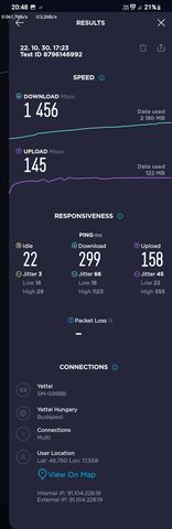 Lehet, hogy a Telekom lefedettségben jobb, de az nagy részben DSS N28-as látvány 5G, ami 10MHz-nyi sávszélesség. Az N78-as 5G 100MHz-en csak 4 belvárosi bázison működik, többi mind DSS N28. Telekomos topikban osztottam meg mérést: B3+N28 50-80Mbit. Lehet, hogy 5G ikon ott a kijelzőn, de ez nem jelent 500 Mbites letöltést... Yetinek 3CA hálózata van Zegen. Ez legjobb esetben 50MHz-nyi sávszélességet fog össze, 375Mbit elméleti max cellánként, a valóságban 80-200Mbit között mérek, ami mobilra szerintem bőven elég.