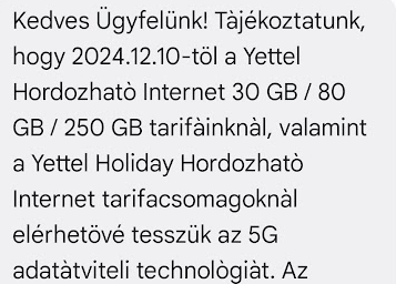 hehe, jött sms, hogy bekapcsolják az 5g-t a csomagnál. Gondolom csak ászf-ben is átírták, hogy nem csak 4G, hanem 5G engedélyezett a csomag, de eddig is volt 5G.